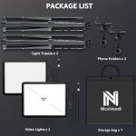 2-Pack LED Video Light Kit, NiceVeedi Studio Light, 2800-6500K Dimmable Photography Lighting Kit with Tripod Stand&Phone Holder, 73″ Stream Light for Video Recording, Game Streaming, YouTube…