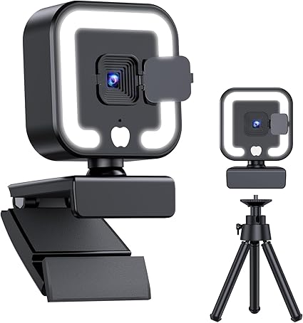4K Webcam, Web Camera with Microphone and Fill Light, HD Autofocus Computer Camera with Privacy Cover and Tripod Stand Streaming Webcam,Plug&Play USB Wbcam for Pc Laptop Desktop Video Calling